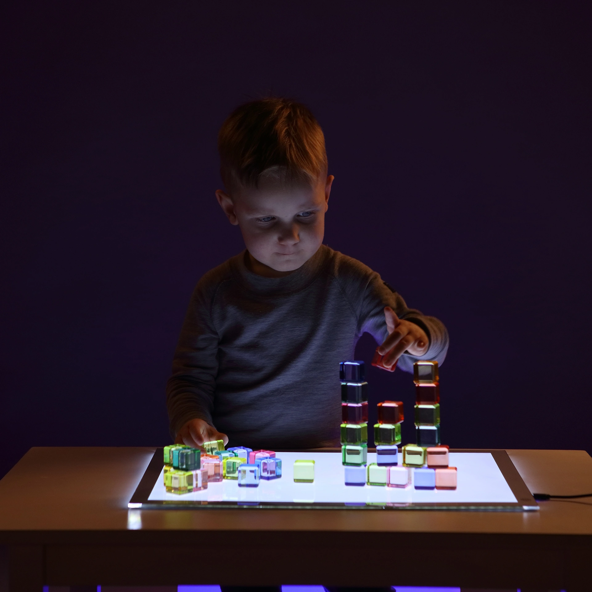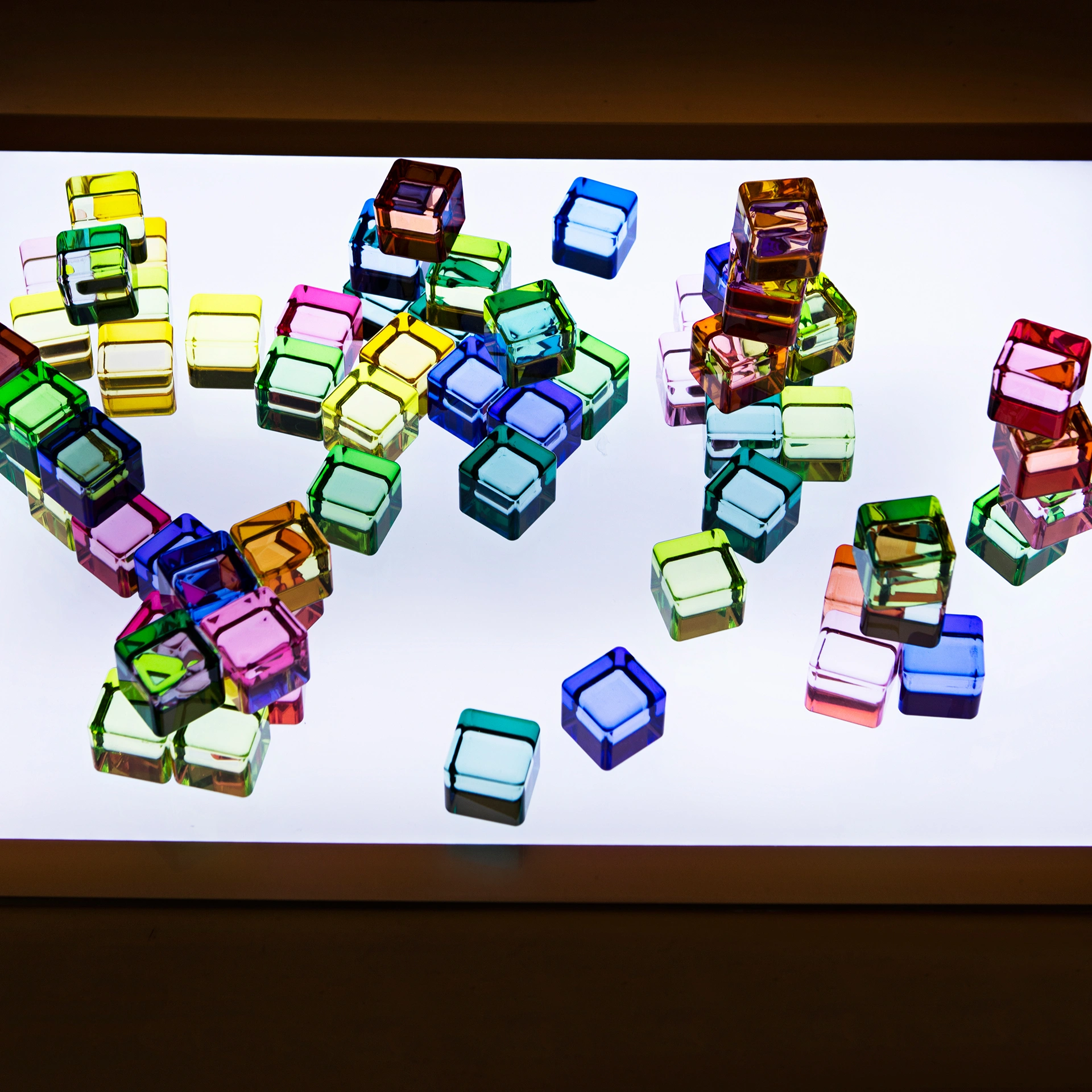 Ob im freien Spiel, als Bauklötze oder zum Erlernen der Farbnamen – die leuchtenden Acryl-Würfel bieten vielseitige Einsatzmöglichkeiten im Kindergarten, in der Schule oder zuhause. Besonders eindrucksvoll wirken sie in Kombination mit einer Leuchtplatte, auf der die Farben intensiv strahlen und faszinierende Lichteffekte entstehen.