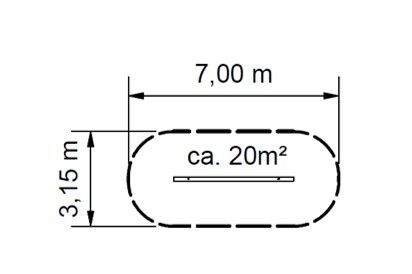 - Fall-/Sicherheitsbereich: ca. 20 m2