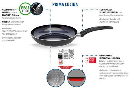 schwarzer Kunststoffstiel, spülmaschinengeeignet, für alle Herdarten, auch Induktion