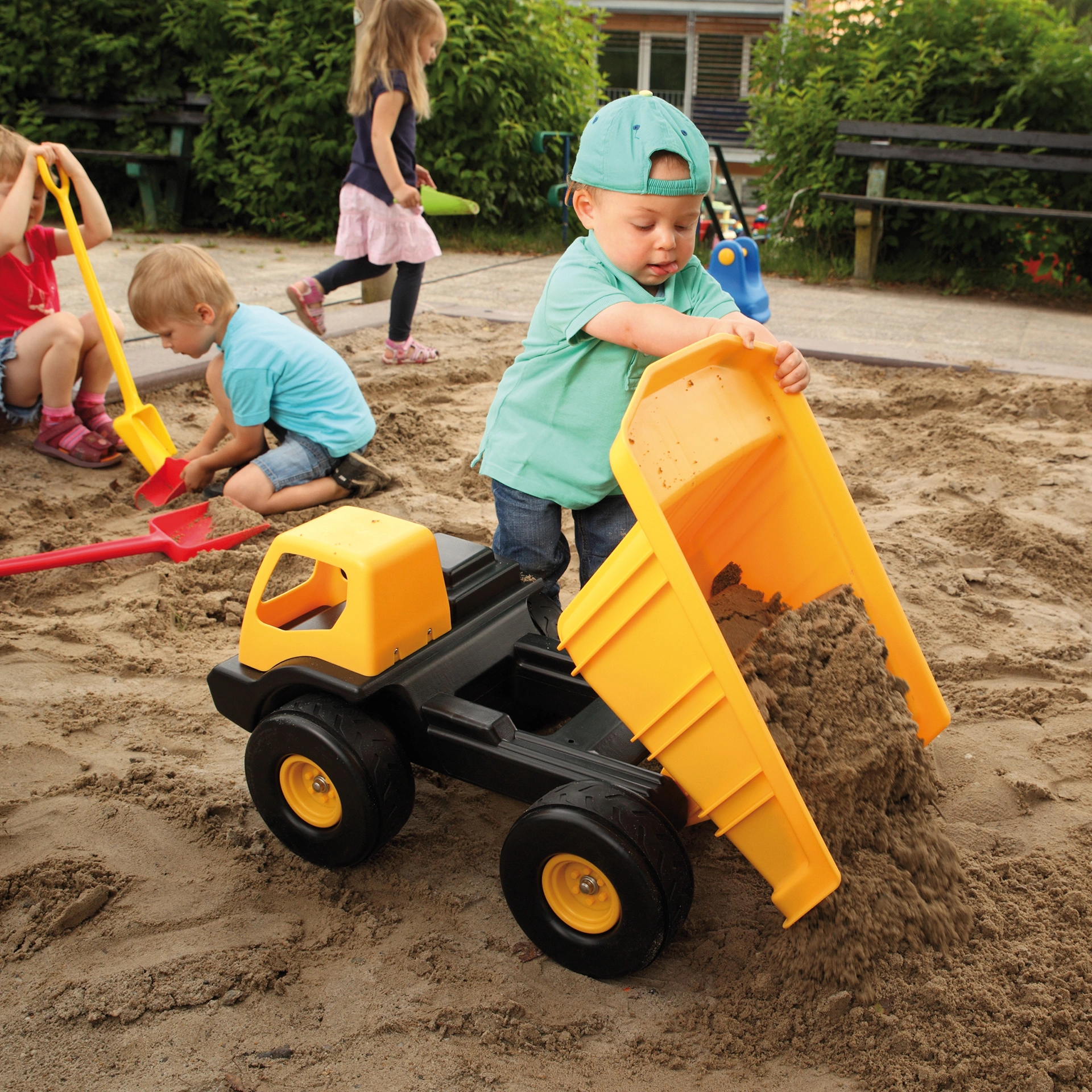 Ob im Kindergarten, auf dem Spielplatz oder zuhause – dieser Dumper sorgt für langlebigen Spielspaß und fördert gleichzeitig Kreativität und motorische Fähigkeiten