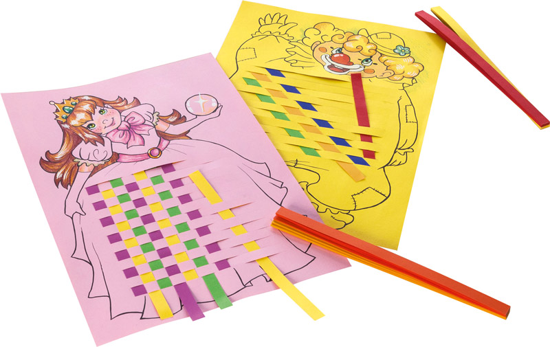 Mit den Flechtmotiven können auch bereits Kinderkartenkinder tolle Flechtarbeiten vorweisen. Durch die Flechtarbeit werden ebenfalls Feinmotorik und Konzentration geübt.