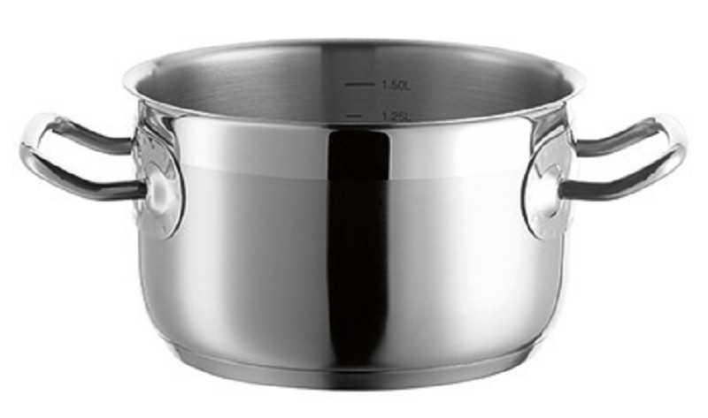 - Edelstahl 18/10, mit Sandwich-Boden, für alle Herdarten, auch Induktion, mit Literskala