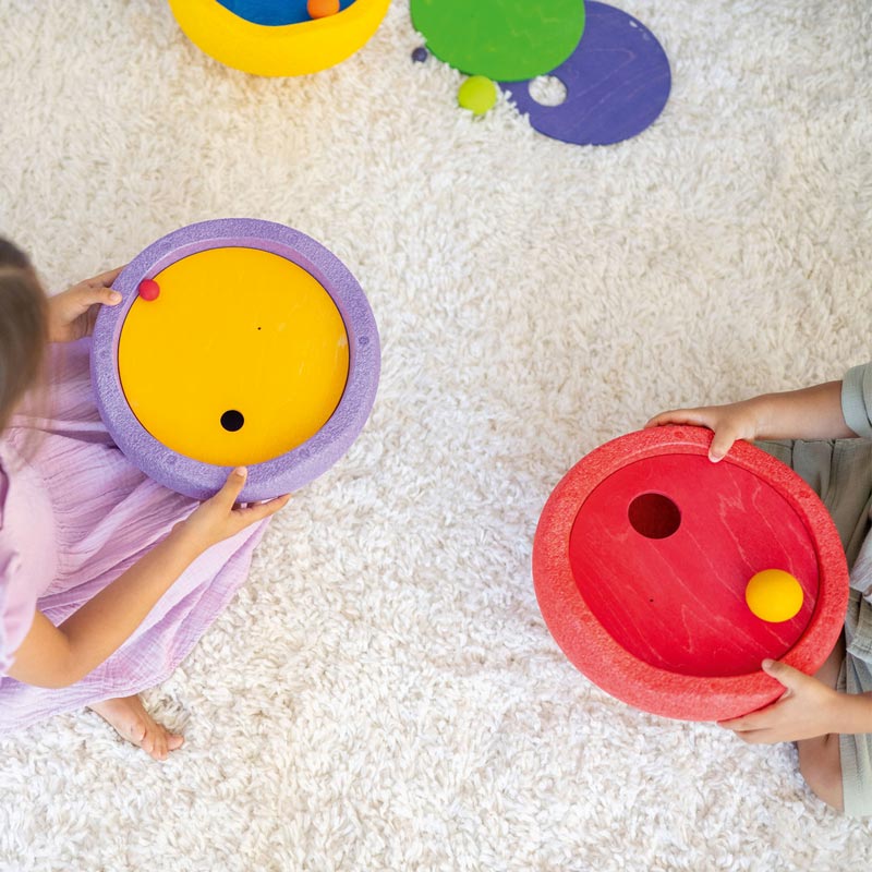 Die Kullerscheiben entstanden in einer einzigartigen Kooperation zwischen GRIMM’S und Stapelstein® – zwei Marken, die für freies, intuitives und nachhaltiges Spielen stehen. Das Set fördert motorische Fähigkeiten, Kreativität, Farb- und Größenverständnis sowie freie Bewegung.