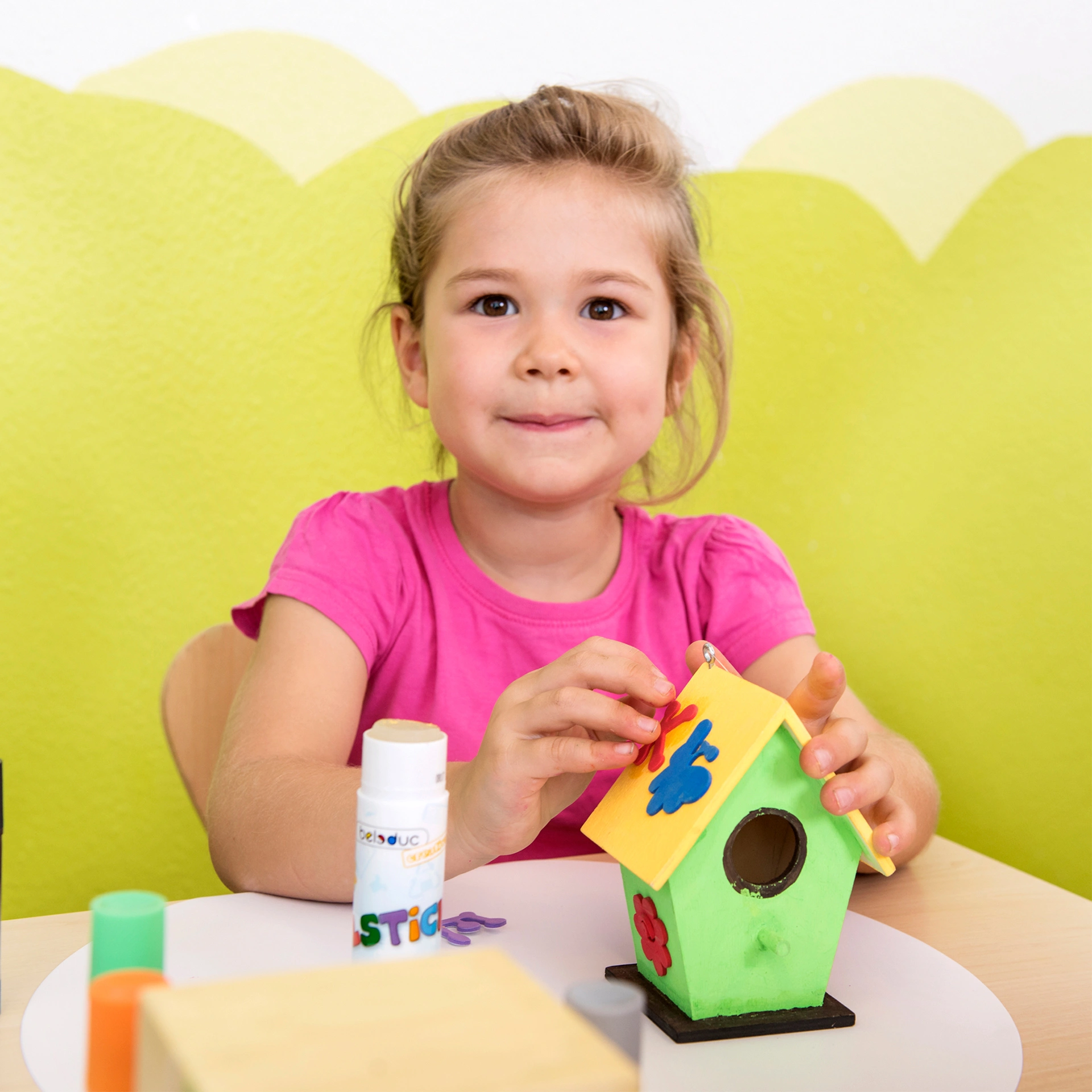 Der Klebstoff wird glatt, gleichmäßig und transparent aufgetragen und bietet ausreichend Zeit zur Korrektur. So können Bastelarbeiten präzise ausgerichtet werden, bevor der Kleber trocknet.
