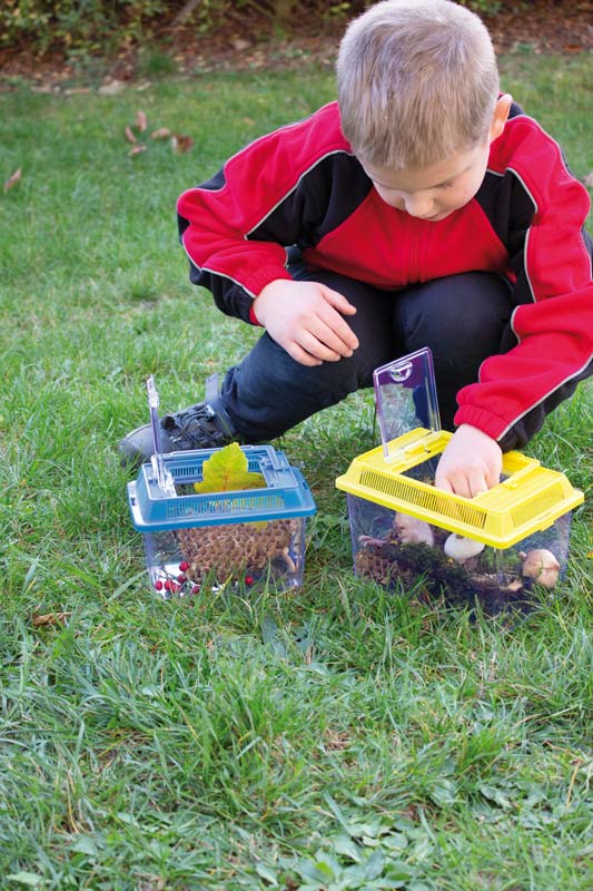 ... von Insekten, kleinen Tieren und Wasserlebewesen. Die zwei verschieden großen Boxen haben am Deckel ein zu öffnendes Sichtfenster, Luftschlitze und einen Tragegriff. Farbig sortiert.