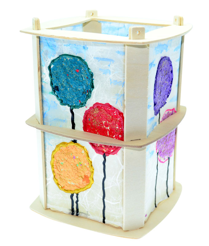 Gestalten Sie die Laterne ganz nach Ihren Wünschen und kreieren Sie ein einzigartiges Einzelstück. Ob durch Bekleben, Bemalen, Bedrucken oder Bestempeln – Ihrer Kreativität sind keine Grenzen gesetzt. Ein bemaltes Papier oder Folie lässt sich mühelos in die Seitenstreben einklemmen.