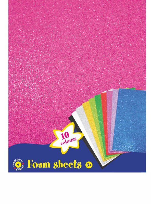 Moosgummi Glitter, 10 Blatt, DIN A4, 10 Farben