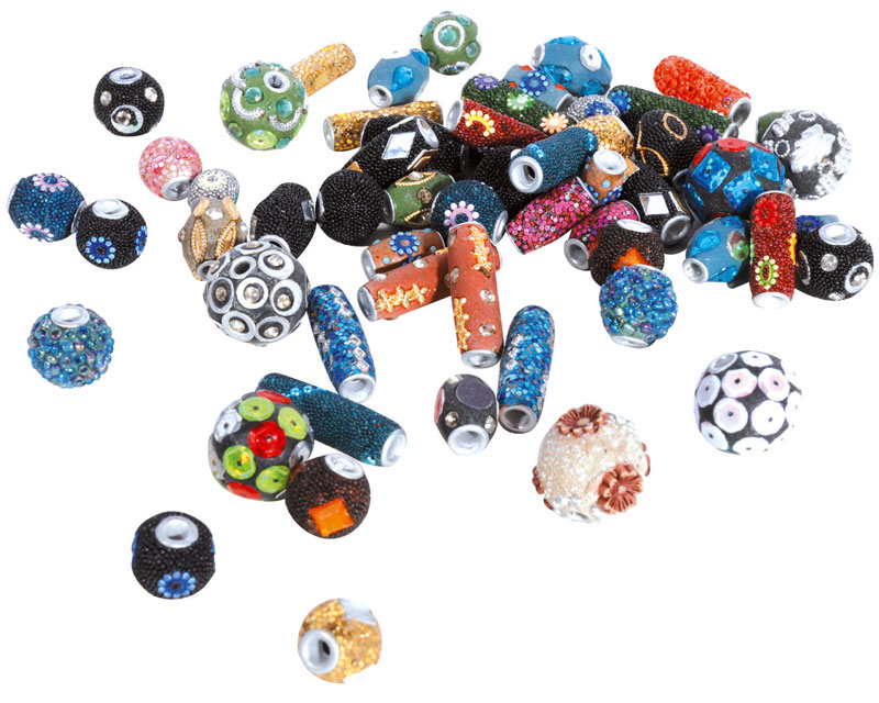 Perlen aus 1000 und einer Nacht! In diesem fantastischen Ensemble aus unterschiedlichen Größen, Designs, Farbtönen und Formen ist jede einzelne Perle ein kleines Meisterwerk für sich. So wird das Gestalten, Auffädeln und Dekorieren rasch zu einem Ausflug in zauberhafte Märchenwelten.
