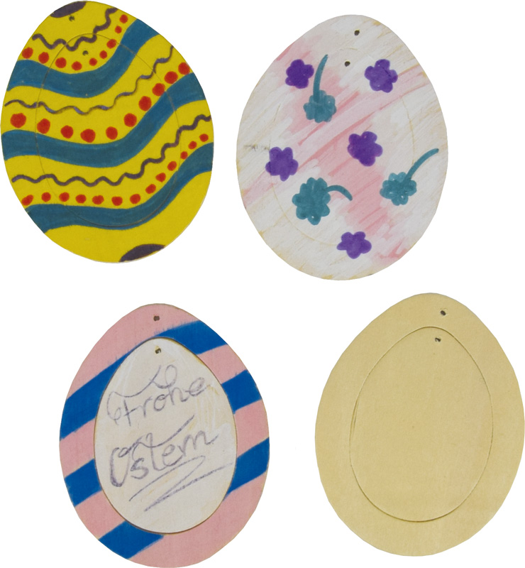 Zur individuellen Gestaltung kann das Ei angemalt, beklebt oder mit anderen Basteltechniken gestaltet werden.