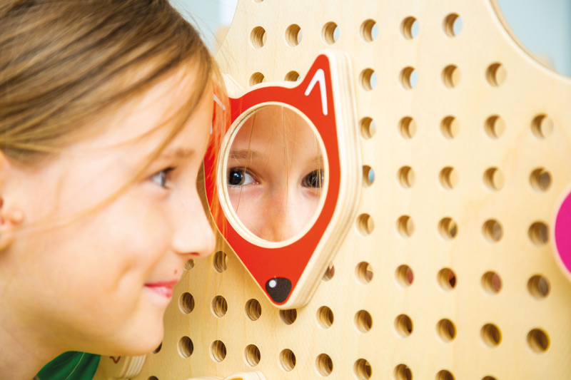 Diese Spiegel faszinieren. Mit dem PLUG it "Spiegel Set" lässt sich Rollenspiel ausprobieren: Bin ich ein Prinz oder eine Prinzessin? Ein Löwe, Fuchs oder eine Blume? Kinder experimentieren gerne spielerisch mit dem Bild, das von ihnen zurückgeworfen wird, und probieren verschiedene Rollen aus. Sie ziehen Grimassen, schauen böse und gefährlich, dann wieder lieb. Das PLUG it by beleduc "Spiegel Set" ist die ideale Ergänzung zu einem Set mit bunten Plugs, so dass auch Tiere oder Körperformen gesteckt werden können.