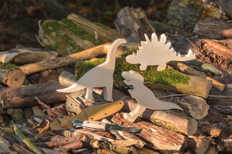 ... Die Saurier aus weichem, astfreiem Lindenholz können mit Schnitzmesser, Feile, Schleifpapier und anderen Holzwerkzeugen bearbeitet - und natürlich auch bemalt werden.