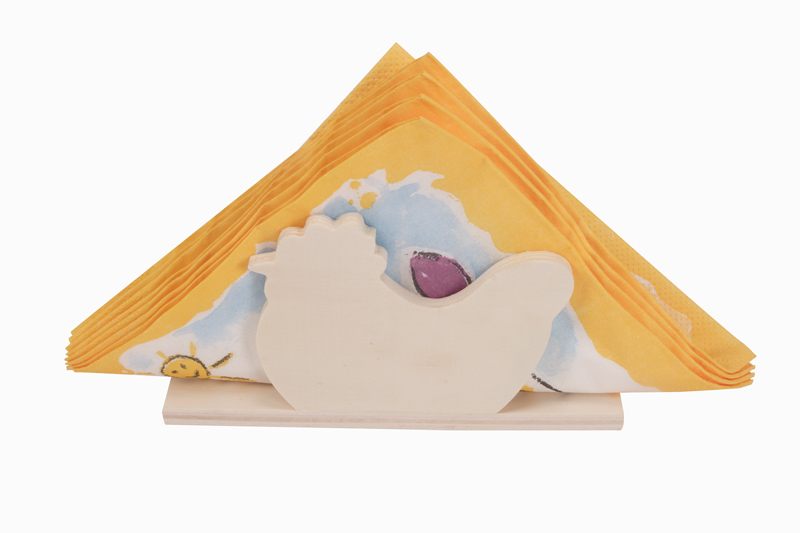 Der Serviettenhalter aus Holz wurde in Form von einem Huhn gefertigt. Ideal geeignet als Ostergeschenk zum Bemalen und Basteln mit Kindern.