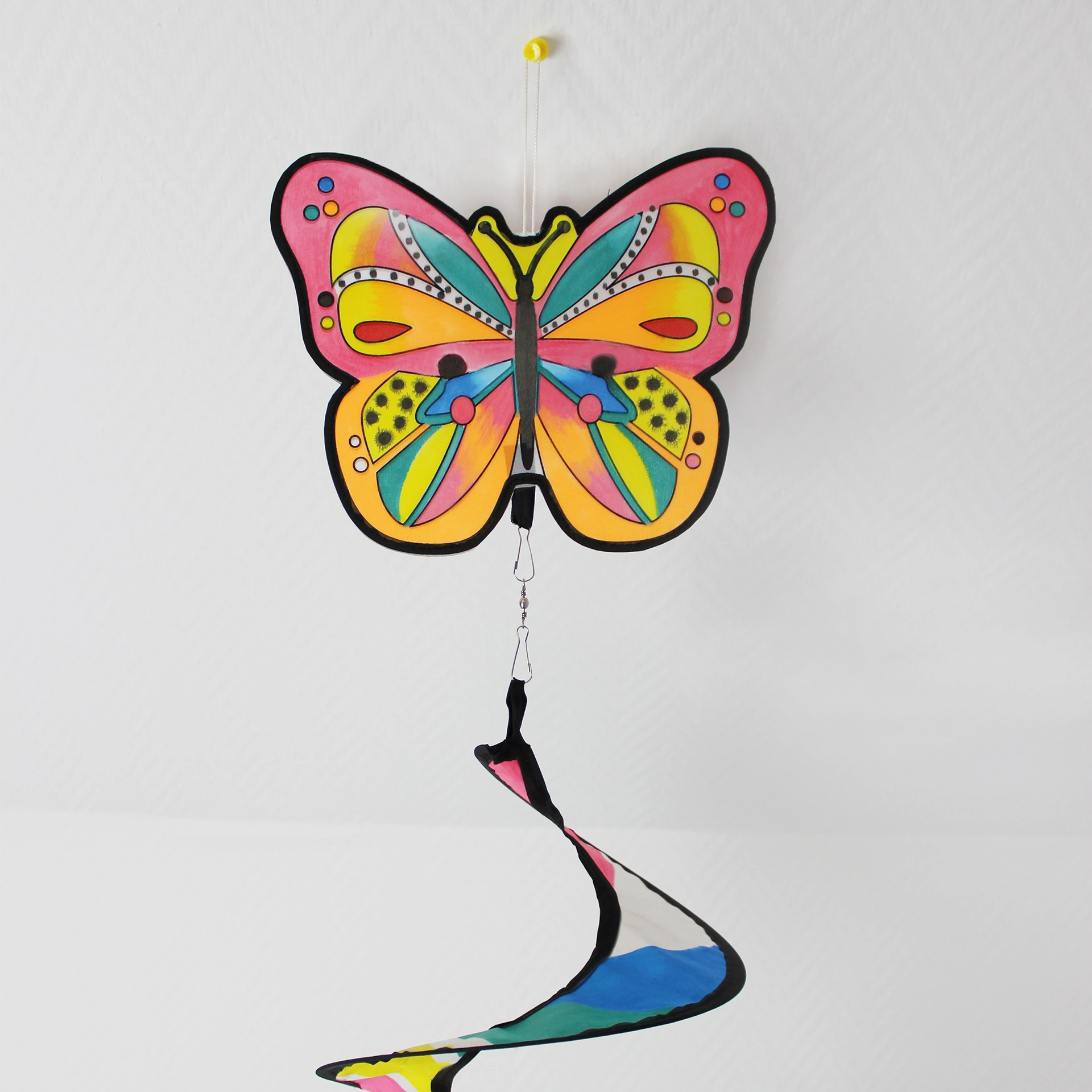 Kinder können sowohl den Schmetterling als auch die unteren Elemente individuell gestalten und ihrer Fantasie freien Lauf lassen. Dadurch entsteht ein ganz persönliches Kunstwerk, das sich perfekt als Dekoration eignet.