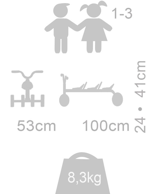 Winther MINI VIKING Rutsch Dreirad für zwei Ein lustiges Rutsch- und Schiebefahrzeug für zwei Kinder. Der hintere Sitz hat einen zusätzlichen Festhaltebügel. Alter: 1-3 Jahre Länge: 77cm Breite: 53cm Sitzhöhe: 24cm Lenkerhöhe: 41cm Gewicht: 6,6kg MINI VIKING Fahrzeuge bieten Sicherheit und lange Lebensdauer: 3 Jahre Garantie auf Rahmen und Gabel einfaches Montage-System kompletter Ersatzteil-Service