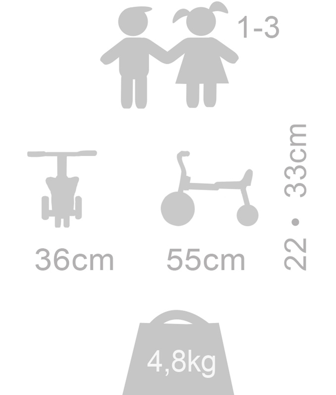 Der neue Safety Scooter hat das gleiche Design wie der MINI Scooter (Art. 438), durch die Doppel-Vorderräder ist er aber wesentlich stabiler und unterstützt statisches Fahrverhalten bei Kindern, die ihr Balanceverhalten nocht trainieren müssen.