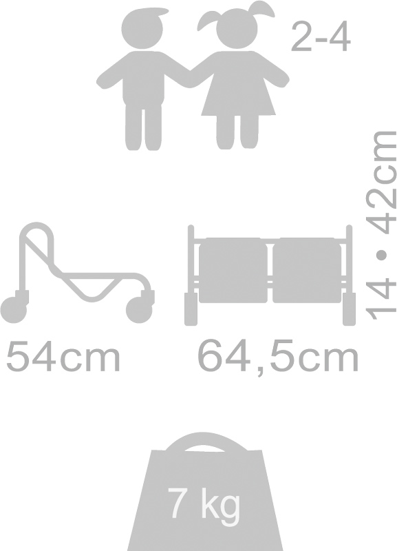 Für die Altersgruppe 2 bis 4 Jahre - Länge 65 cm, Breite 55 cm, Höhe 42 cm, Sitzhöhe 14 cm, Gewicht 7,6 kg