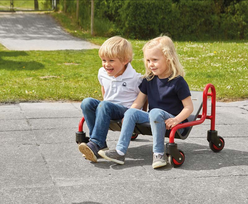 Der lustige Sofa Surfer ist ein ganz besonderes Fahrzeug, das die Koordinationsfähigkeit der Kinder herausfordert. Kinder koordinieren ihre Bewegungen, sie kommunizieren und kooperieren, weil sich jedes Rad um 360 Grad drehen kann und somit die Richtung nur gemeinsam bestimmt werden kann. Der Sofa Surfer fördert soziale Interaktion und bietet spannende Spielideen, in denen kleine Kinder ihre Fähigkeiten entwickeln. Platznehmen und losfahren ist einfach und leicht, da ohne Pedale gestartet und gefahren wird. Das macht dieses Fahrzeug ideal für kleine Kinder, die noch nie mit einem Dreirad oder Fahrrad gefahren sind. Bequeme Sitze und ein einzigartiges Design, das robust und gleichzeitig sicher ist. Hergestellt aus kindersicheren Materialien mit ungiftigen Oberflächen und in bekannter WINTHER Qualität.