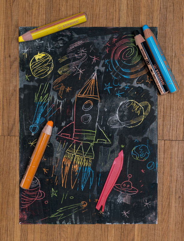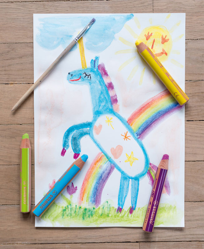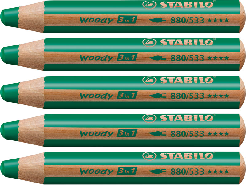 Der STABILO woody 3 in 1 ist ein außergewöhnliches Multitalent: Er ist Buntstift, Wassermalfarbe und Wachsmalkreide in einem. Mit seiner hohen Deckkraft und Farbintensität eignet er sich super für dunkles und schwarzes Papier sowie für Kratzbilder. Er lässt sich spielend leicht mit einem Pinsel aquarellieren und zaubert dabei tolle Kunstwerke aufs Papier. Auch auf glatten Oberflächen wie Glas und Metall funktioniert er hervorragend und lässt sich von Glas mit Wasser auch ganz einfach wieder entfernen. Hergestellt wird der Stift mit der robusten XXL-Mine aus 100% PEFC-zertifiziertem Holz. Der STABILO woody 3 in 1 ist so ergiebig wie acht Standard-Buntstifte. Seine runde und dicke Form eignet sich besonders für kleine Kinderhände.