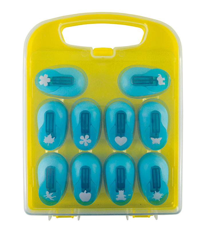 Die 10 Wunderlocher kommen in einem praktischen Tragekoffer. Die Locher sind handlich und für Kinderhände ideal geeignet, was diesen Artikel auch für Kita´s und Kindergärten interessant macht.